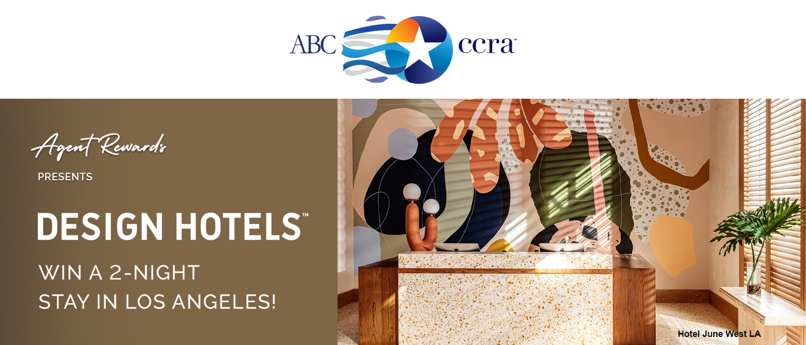 Terms and Conditions: Agent Rewards is open to all accredited travel agents that are employees or members of ABC•CCRA partner agencies. Prize(s) are non-transferable. All entries must be received between March 5, 2026, and March 18, 2026. Winner(s) will be notified by email within 10 days of the promotion end date.